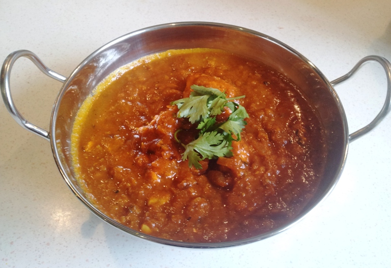 Cooking method for chicken tikka dhansak.